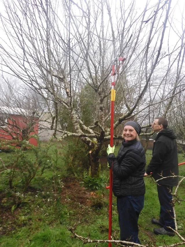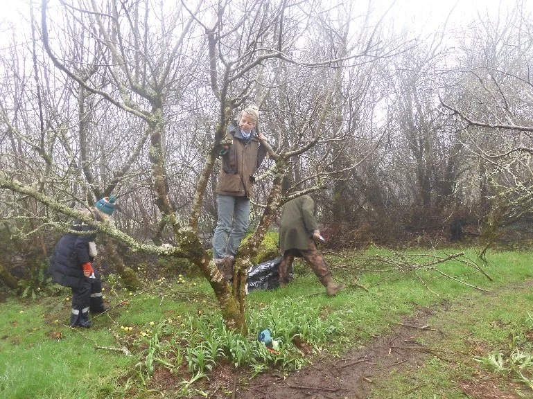In January 2024, myself and Mum (Jacci) ventured down west on a very wet day to an apple pruning workshop hosted by Resilient Orchard CIC. Michelle guided us through tips and techniques, especially helpful as their trees are a similar age to ours at Fat Apples.